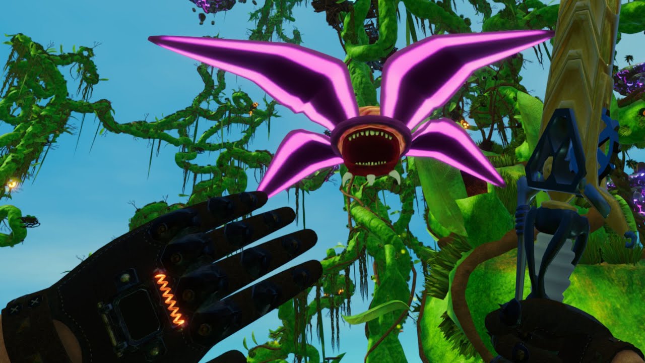 Il vero problema è infatti proprio questo: Bean Stalker non sa esattamente che gioco è, e ci propone un calderone di roba vista e rivista traslata in qualcosa d’altro, che può risultare affascinante da una parte, ma che si dimostra infine troppo sbrodolata per convincere fino in fondo. All’interno dei livelli dovremo recuperare non solo materiali, ma anche oggetti importanti e ricette per il crafting, e dovremo inoltre vedercela anche con le forze antagoniste che dominano le aree. Api, ragni e piante assassine cercheranno in ogni modo di farci la pelle, e starà a noi sconfiggerle con tutti i mezzi a nostra disposizione. A partire dalle nostre piccozze, potremo aumentare le nostre capacità offensive costruendo spade, martelli, pistole, fucili e così via, esplorando una versatilità che si dimostra vincente solo all’apparenza.