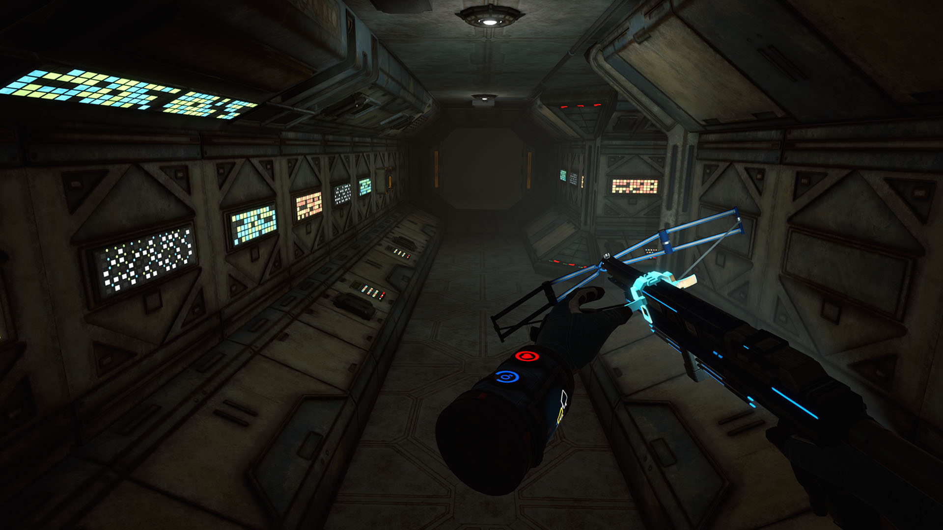 Chiudiamo infine sull’aspetto tecnico, che si difende più che dignitosamente su Oculus Quest 2. Nonostante non stiamo parlando di un impatto da spacca mascella, Cosmodread risulta pulito ed efficace sul pannello dell’ultimo standalone di Facebook, restituendoci un ottimo lavoro soprattutto sui corpi illuminanti. Lavorando prevalentemente di luci ed ombre, il titolo di White Door Games regala il meglio di sé sullo schermo definito e profondo di Quest 2, che riesce oltretutto a bilanciare dignitosamente i neri di un pannello LCD che non vanno giù decisamente a tutti. Ottimo anche l’impatto su personal computer, che mantiene il minimalismo artistico della versione Quest, ma che spinge l’acceleratore su massa poligonale e qualità delle texture, non sconvolgendo di certo il materiale di partenza, ma aggiungendo un tocco di profondità al tutto. In generale consiglio comunque di giocare Cosmodread su Quest 2, o su un Quest collegato al PC tramite VD; poiché vi ritroverete costantemente a ruotare sulla vostra posizione in cerca di oggetti e mostri spaventosi, e sarebbe un peccato inciampare su un cavo che si fa sempre più di troppo nel mercato VR. Ottimo poi il lavoro sul motion sickness, con la possibilità di utilizzare quattro differenti sistemi di movimento, che vanno ad eliminare qualunque rischio di chinetosi nel giocatore.