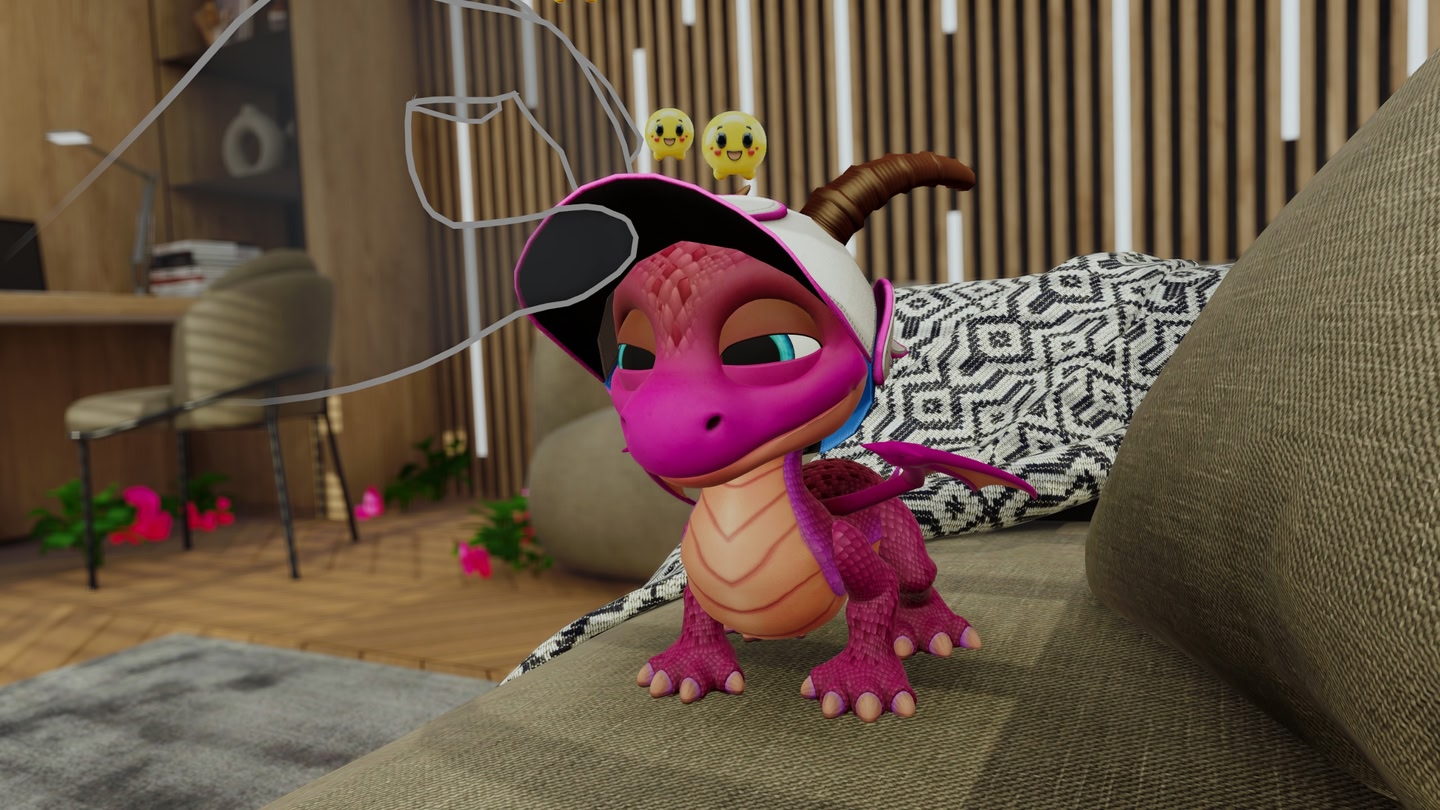 Il gioco è disponibile esclusivamente in modalità Mixed Reality, permettendoci di vedere il nostro cucciolo squamoso muoversi e interagire con l’ambiente circostante. Inoltre, possiamo arredare la stanza per farlo sentire a casa: una cuccia comoda, un dispenser per il cibo, dei giochi e persino una lettiera saranno essenziali per il suo benessere. Grazie all’utilizzo di un comodo tablet virtuale, richiamabile con la mano sinistra, potremmo non solo di acquistare nuovi oggetti e decorazioni con la valuta di gioco, ma anche di monitorare le statistiche del nostro draghetto, tenendo d’occhio il suo umore e le sue necessità.
