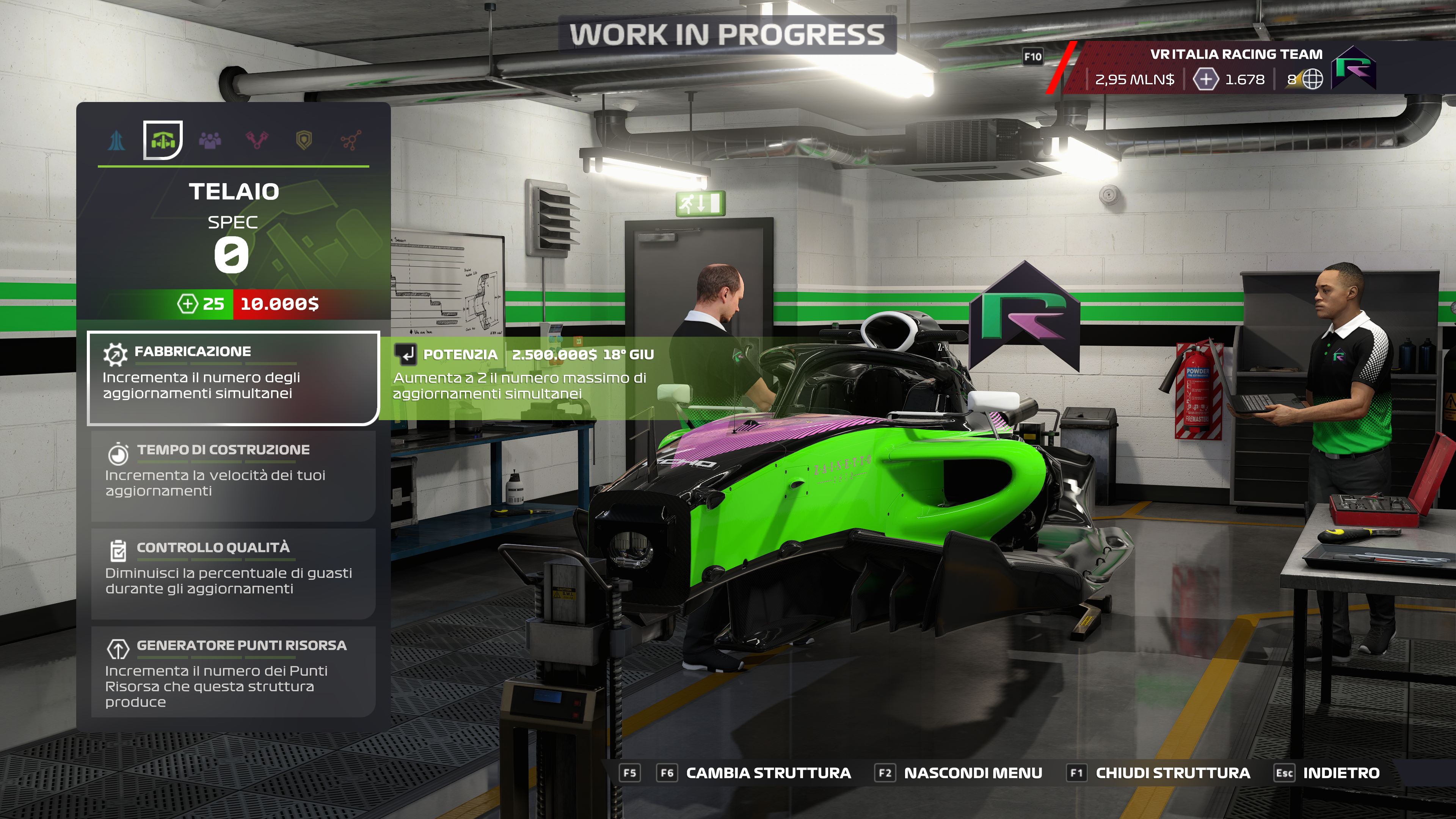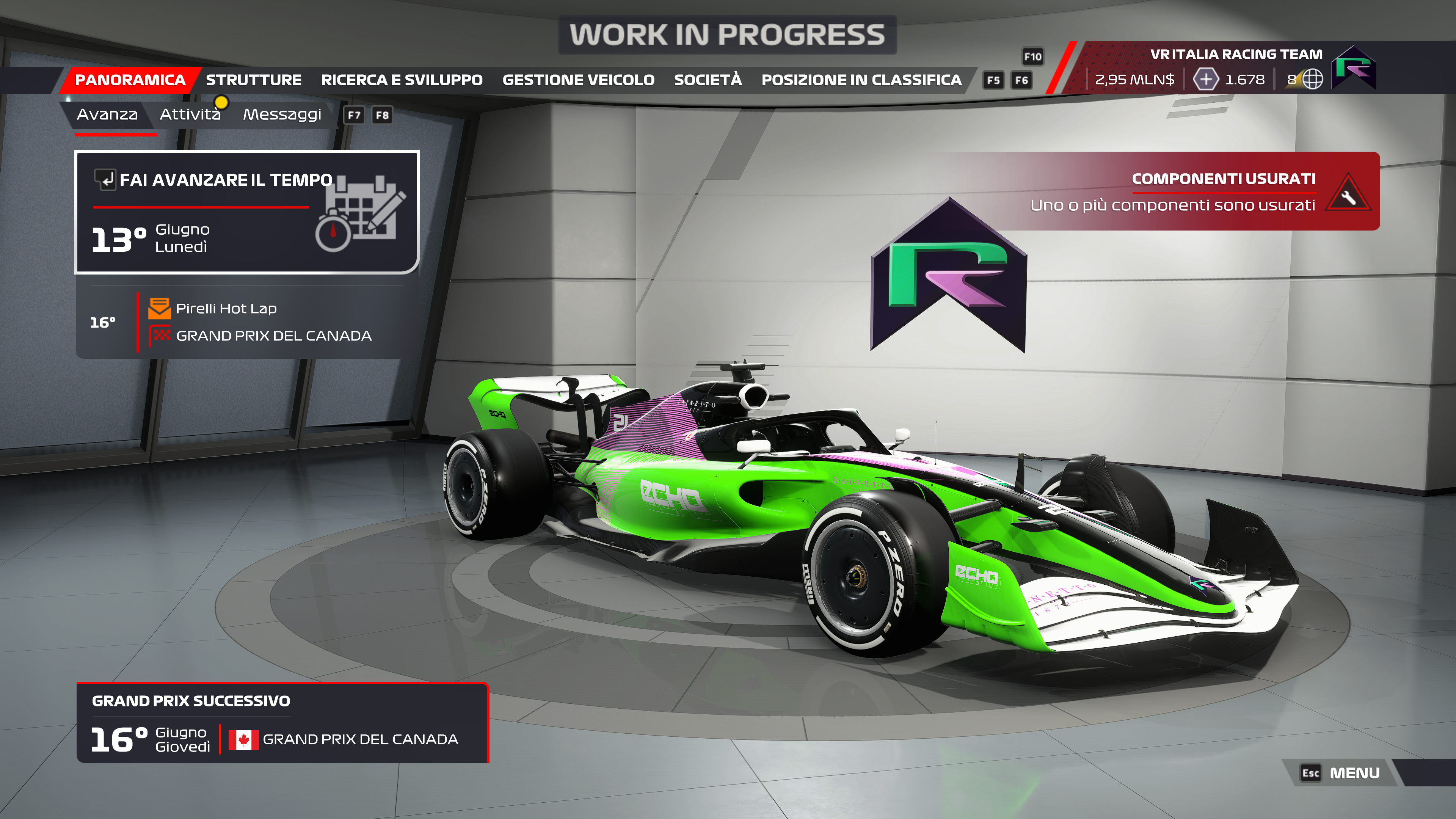 Se la modalità carriera è sembrata molto convincente, per i più fanatici del mondo delle corse, si potrà vivere sempre in Realtà Virtuale una stagione come TEAM PRINCIPAL di una scuderia tutta nuova e personalizzata. All’interno di questa modalità, oltre a tutto quello che già è stato scritto per la carriera piloti, sarete chiamati alla gestione finanziaria del vostro team, come ad esempio imparare a gestire il nostro Quartier generale, costruire e migliorare le varie infrastrutture: L’officina, la galleria del vento, il centro delle relazioni pubbliche e il centro per le simulazioni e lo sviluppo dei piloti.