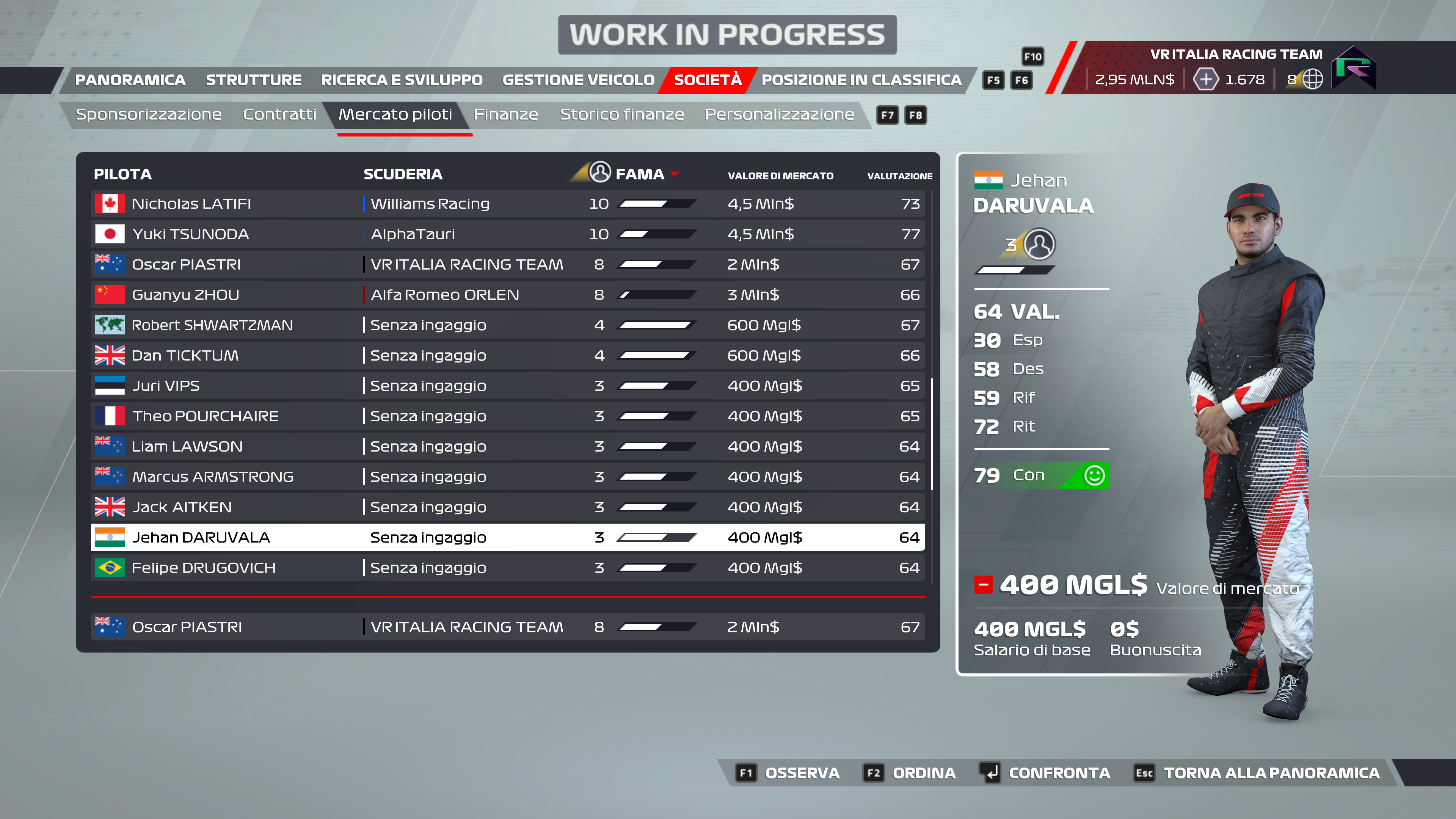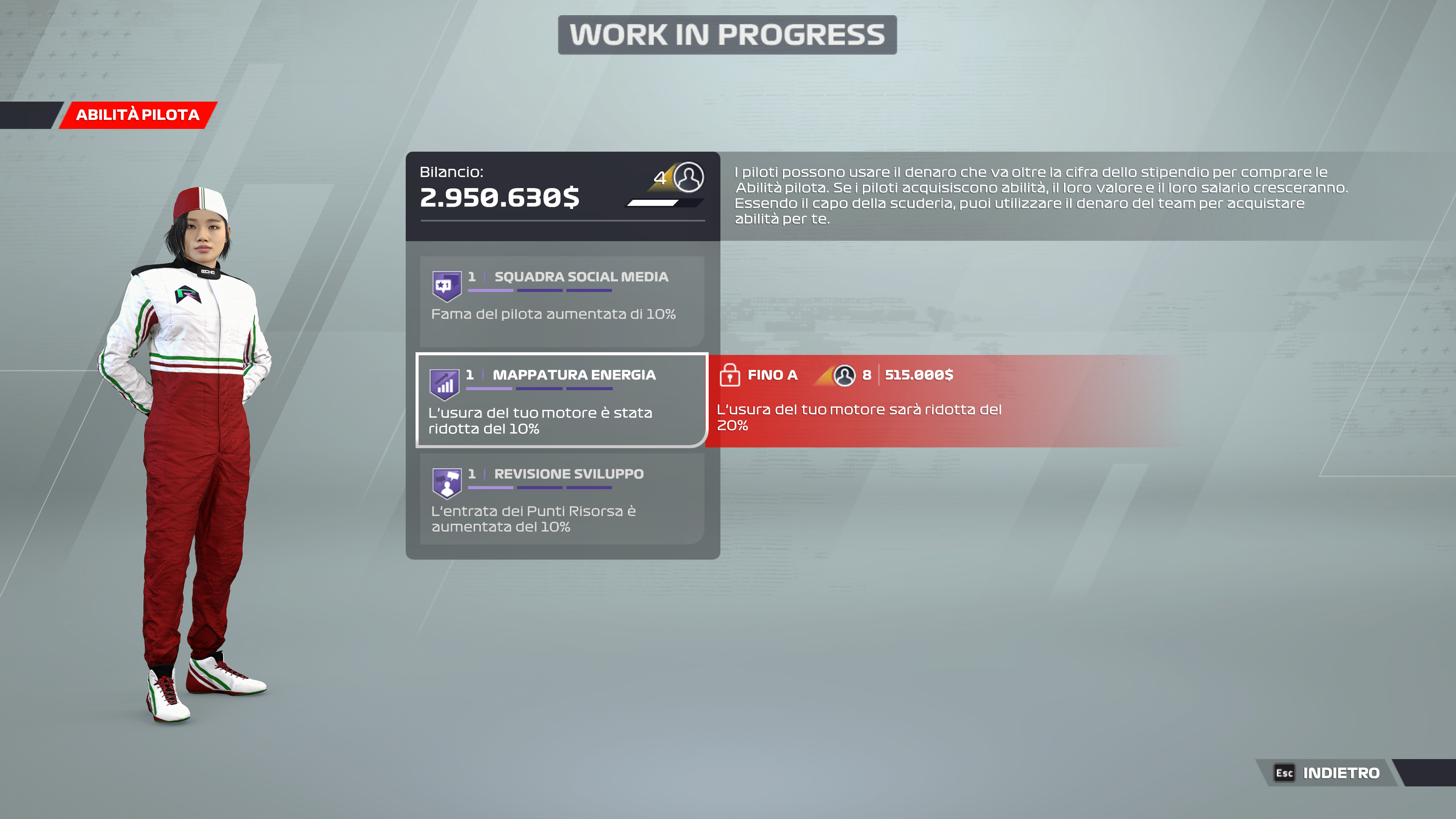 Potremo scegliere se partire come un Team emergente, con un discreto budget per fare investimenti fin dall’inizio o creare un team con grande potenza finanziaria e obiettivi di alto profilo fin dalle prime battute della vostra stagione.