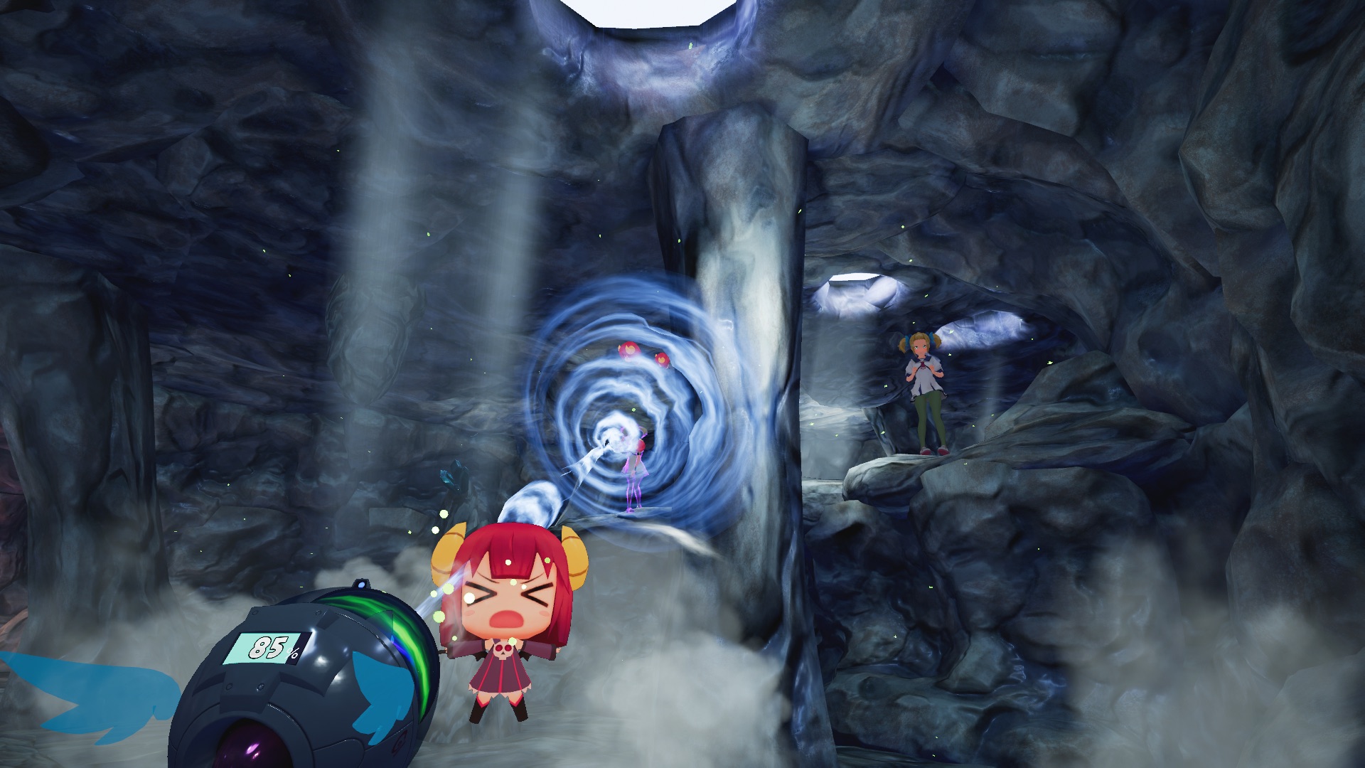 Il gioco inizia con un gradevole intermezzo animato, mostrato tramite uno schermo fluttuante che verrà utilizzato nei rari frangenti illustrati della storia. Un liceo femminile è stato infestato dai demoni, i quali si attaccano alle studentesse rendendole aggressive spargendo il male in ogni dove. Guidati da un angelo custode, anch’esso avvenente, e dotati di uno speciale visore che mostra le creature ultraterrene, dovremo riportare la pace armati sulla mano destra di una pistola ai feromoni e sulla sinistra di un potente aspiratore. Sebbene il trovare un senso in tanta follia è cosa improba, la pistola dovrebbe sia ferire i demoni instillando amore, sia purificare le ragazze sempre grazie all’innamoramento. Tale stato va ottenuto colpendo i punti deboli di ciascuna, che emergono dopo alcuni istanti di osservazione, scritte giapponesi incomprensibili ma sagacemente differenziate per colore e posizione così da permetterci di capire se mirare alla testa, al tronco, al bacino o alle gambe. Ma, cosa riuscitissima in realtà virtuale, potremo ottenere un risultato ancora più potente fissandole negli occhi da breve distanza: tutti i personaggi ci seguiranno con lo sguardo, e quando li fisseremo per un certo lasso di tempo, si innamoreranno perdutamente creando un effetto a cascata su tutte le studentesse astanti. Gal Gun 2 può essere giocato anche da seduti, ma un roomscale ampio faciliterà di molto l’esecuzione di questa tecnica denominata “lovestruck” rendendoci dei seduttori infallibili.