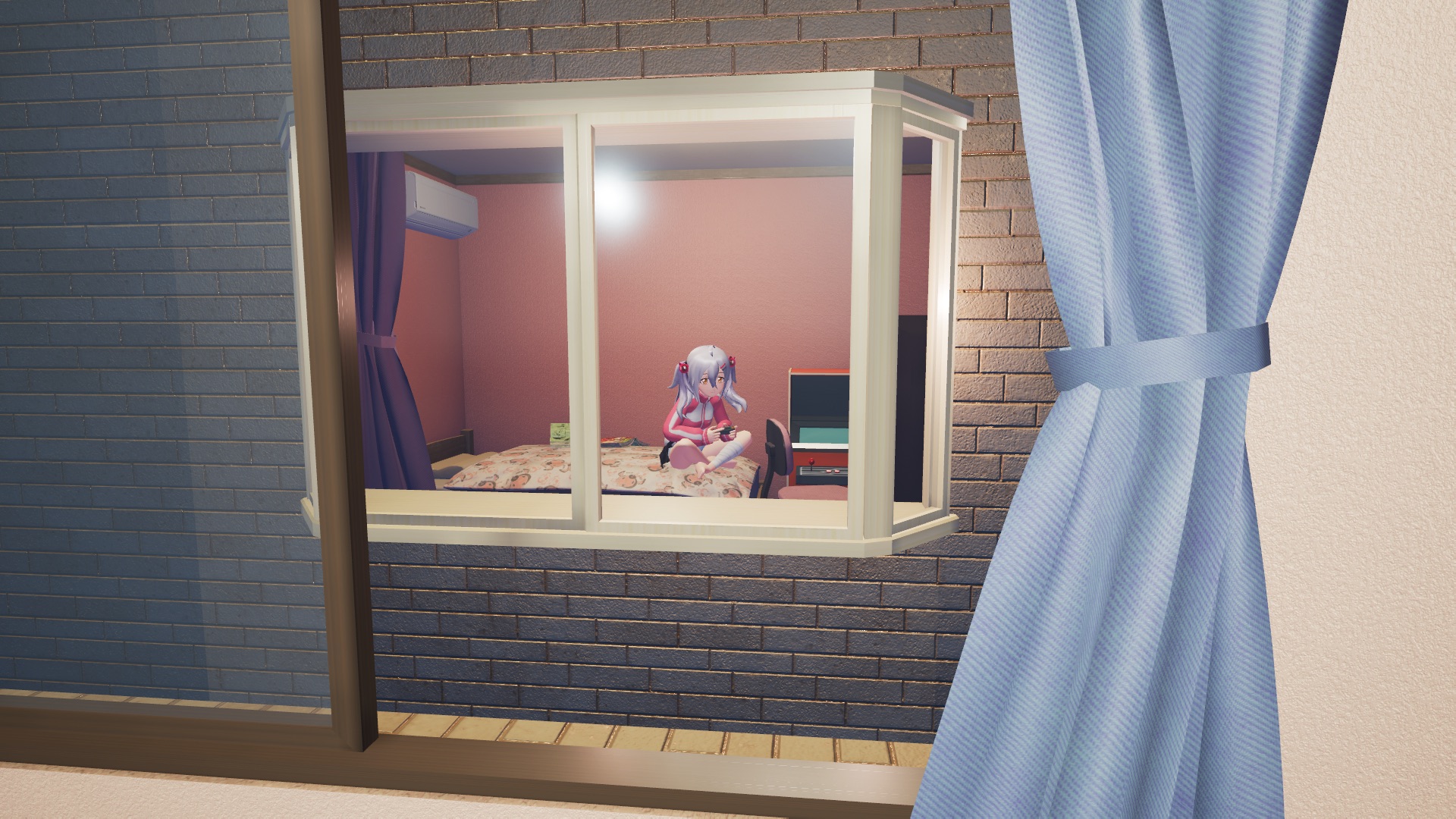 Quanto detto finora rappresenta l’ossatura del gioco, nonché quanto il più volte citato Gal Gun VR aveva da offrire. Il titolo è tuttavia molto più articolato, con un collante narrativo forte: avrete 18 giorni per debellare l’invasione demoniaca in corso ed i finali possibili saranno molteplici, a seconda delle missioni portate a termine. Ci saranno infatti dei personaggi principali, ad iniziare dal nostro angelo custode, con delle loro trame che si dipaneranno fino ad un loro esito naturale, nonché personaggi secondari e terziari con ulteriori vicende e l’aggiuntiva possibilità di ottenere i loro numeri di telefono, per chiedere appuntamenti futuri. Ogni giornata si dividerà in mattina, pomeriggio e sera con un conseguente cambio di illuminazione ed altrettante possibili missioni, per poi giungere la notte nella nostra cameretta che sarà personalizzabile nell’arredamento e oggetto anch’essa di dialoghi ed incontri.