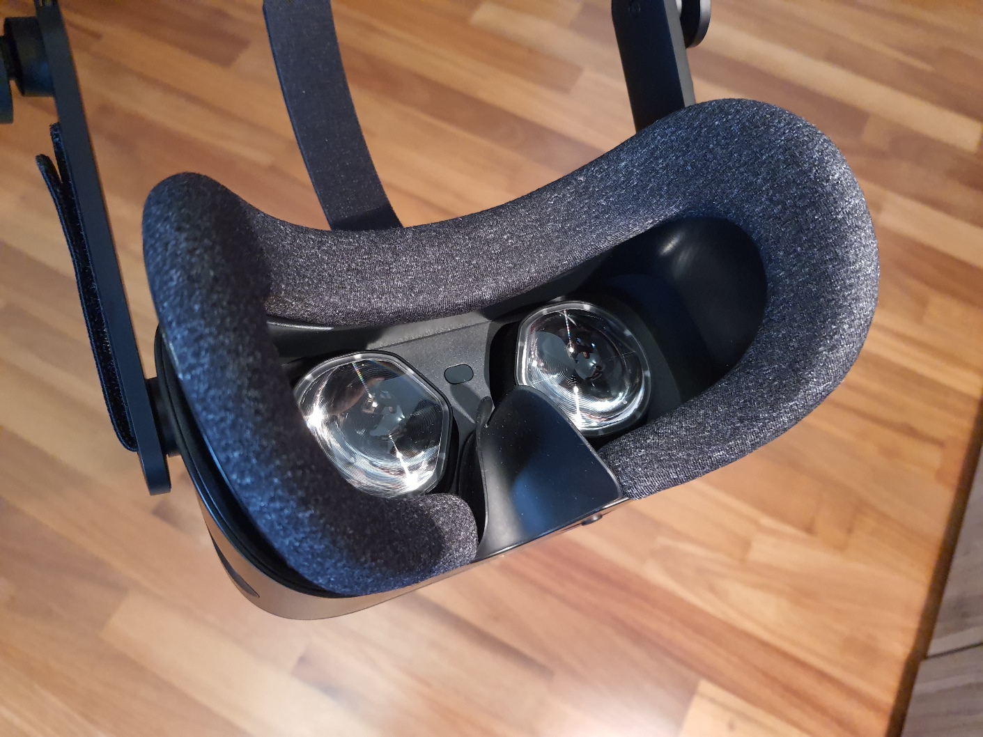 Però mi duole dire che questa chiarezza estrema è presente solo in una porzione limitata del campo visivo: dopo circa un 15-20% del FOV infatti entra in azione la parte Fresnel, e l’immagine diventa più sfocata, anche se sempre perfettamente leggibile (a parte i bordi estremi). Non c’è uno stacco netto, ma una transizione costante muovendo gli occhi verso i bordi. Ma ciò in pratica cosa comporta? La fovea dell’occhio umano (la parte dell’occhio che riesce a catturare il maggior numero di dettagli) copre all’incirca solo 1,5° del campo visivo: per questo motivo quando saremo nel pieno dell’azione in VR non noteremo mai lo stacco. Quando invece siamo fermi ad osservare un paesaggio, oppure dovremo leggere una scritta a tutto schermo, ecco che lì tendiamo a muovere le pupille invece che girare la testa, e noteremo la transizione della sfocatura. Il problema delle lenti del G2, quindi, non è uno sweet spot molto ridotto, come molti dicono, ma è proprio questo passaggio tra l’estrema nitidezza della parte asferica e la sfocatura maggiore creata dalla parte Fresnel. Per questo motivo c’è da riporre ancora nel cassetto la possibilità di usare il visore per lavorare, creando la propria postazione virtuale multi-monitor. Anche la visione di film sarà ancora un po’ castrata rispetto all’esperienza che si può avere con un buon TV o al cinema. La scelta d’altronde era tra una lente totalmente Fresnel (che avrebbe garantito una nitidezza minore ma più costante lungo la maggior parte del FOV) e la scelta di Valve. In attesa di una tecnologia veramente rivoluzionaria (e che l’eye tracking diventi mainstream) ritengo che la decisione presa sia la “meno peggio” tra quelle possibili. A proposito di FOV, quello del G2 è assolutamente in linea con quello della maggioranza dei visori in commercio: 90° orizzontali e poco meno di 100° verticali. La mascherina del G2 tiene le lenti abbastanza distanti dagli occhi per permettere di indossare anche un paio di occhiali di media misura. Per questo motivo c’è spazio di manovra per utilizzare soluzioni diverse (ne stanno già uscendo in queste settimane) che permettono di tenere le lenti più vicine agli occhi, con annesso aumento del FOV e dello sweet spot. La presenza delle Fresnel non rende il G2 nemmeno immune ai God Rays, che inizieranno a dare un po’ di fastidio solo quando ci troveremo in presenza di ambienti scuri con delle fonti di luce localizzate molto forti. Non baratterei mai però l’estrema luminosità del display con l’assenza totale dei raggi divini. Presente sotto il visore il cursore per regolare l’IPD: il range ammissibile va da 60 mm a 68 mm.