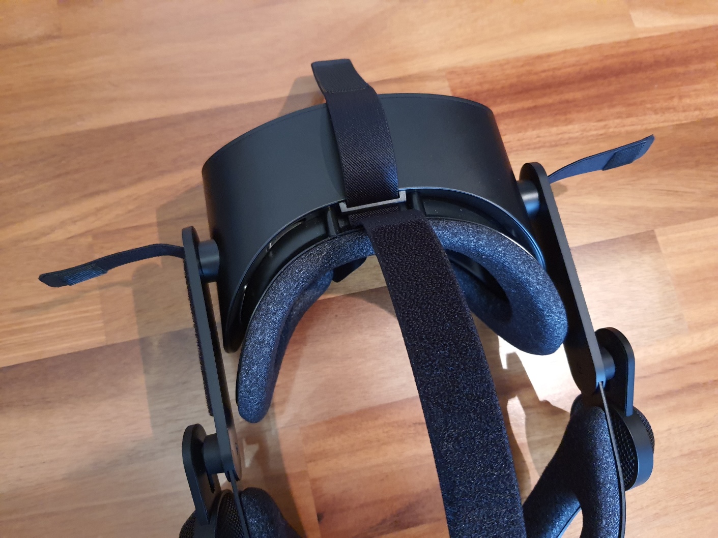 Una volta aperta la scatola dell’HP Reverb G2, ci troveremo davanti subito il visore, all’interno di un sacchetto di simil-tessuto. La prima impressione appena preso in mano è quella di un prodotto leggero e dalle ottime finiture. Per indossarlo basta aprire i tre fissaggi in velcro (due laterali e la fascia superiore) ed adattarli alla propria testa, un po’ come avviene per l’Oculus Rift CV1 e l’Oculus Quest 1. L’interfaccia che andrà a contatto con il nostro volto è di un tessuto molto morbido (come quello del Valve Index) ed un cuscino dello stesso materiale è presente nella parte posteriore. Il visore pesa un po’ di più sia del Quest 1 che del Quest 2, ma i materiali utilizzati uniti ad un perfetto bilanciamento dei pesi lo rendono in assoluto il visore più comodo che io abbia mai indossato. Forse chi preferisce l’halo design continuerà a trovarsi meglio con il PSVR o con il Rift S; personalmente ritengo che la presenza dei tre velcri, unita al fatto che il cinturino può ruotare attorno ai perni di attacco al visore, permetta di regolare ed adattare meglio il comfort alla propria testa. Lo strap inoltre può ruotare di quasi 90° verso l’alto, rendendo immediato l’indossaggio.