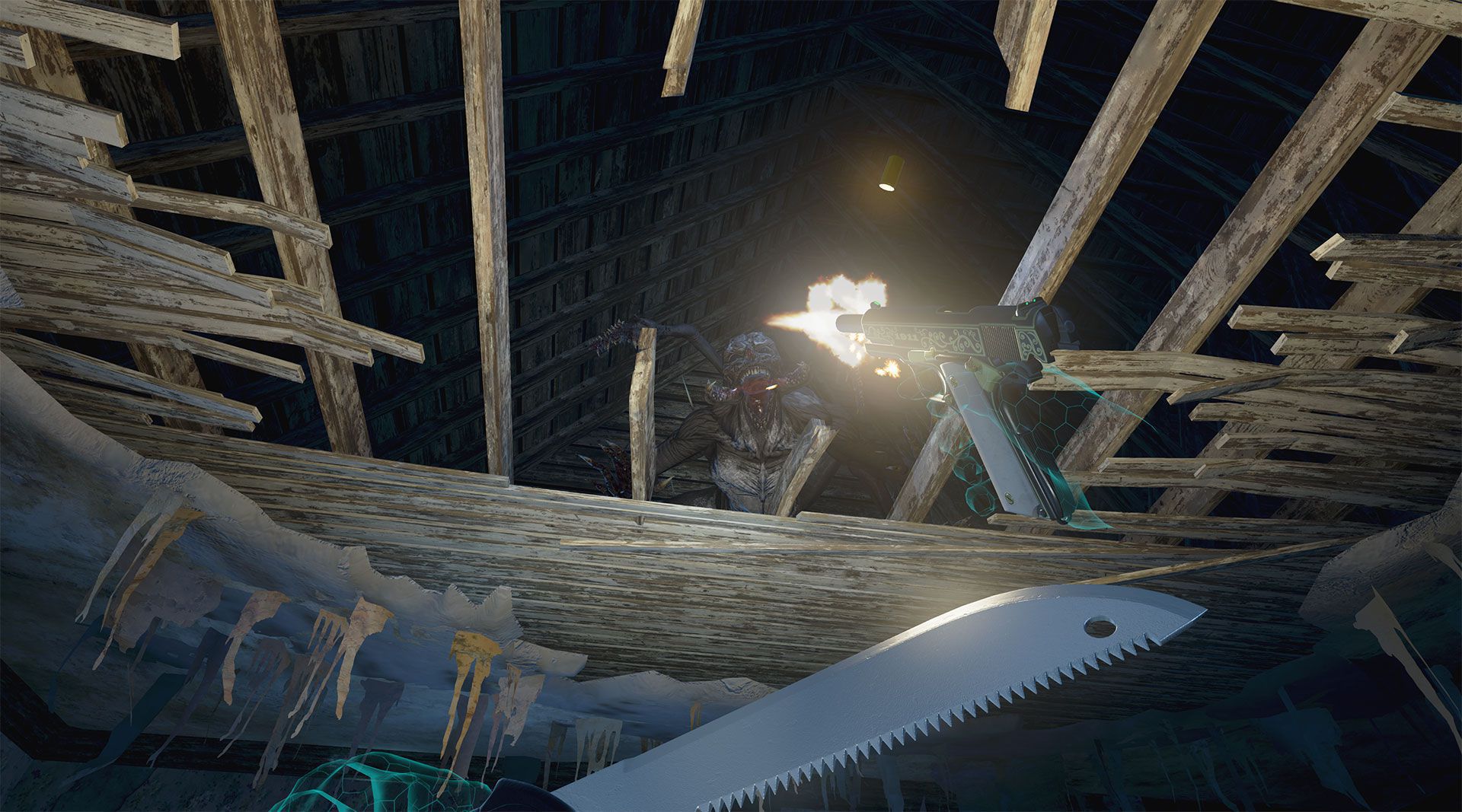 Il gioco è stato strutturato sul tracking a 180°, cosa di per sé non malvagia quando gestita correttamente e non imposta ai sistemi dotati di tracciamento completo. Il risultato al lancio è stato invece di infarcire ambo i touchpad del Vive, principale destinatario di questa versione SteamVR postuma, di comandi di rotazione miscelati a quelli di teletrasporto dove l’innesco involontario fosse pressoché inevitabile. Alle tante lamentele è seguita una patch che ha risolto solo in parte il problema, che sicuramente verrà debellato quanto prima. Il teletrasporto ha anche la peculiarità di avere una sorta di cooldown che si attiva dopo il primo salto, piuttosto simile a quello utilizzato in PayDay 2 VR ma in questo contesto forse meno sensato. Presente anche il movimento fluido quale opzione eventuale, sebbene con una bassa velocità specifica (per favorire il comfort) e senza tutte le opzioni tipiche delle implementazioni post Onward, cosa che immancabilmente scatena fiumi di lamentele tra gli estimatori pubblicazione dopo pubblicazione. In caso di movimento fluido potrete anche teletrasportarvi usando la mano destra, liberi del bug poc’anzi descritto.