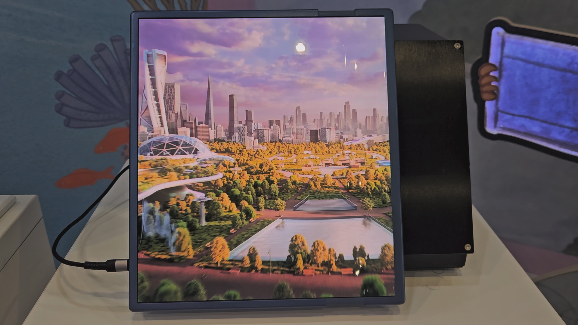 Durante la nostra prova abbiamo potuto vedere davanti ai nostri occhi un T-Rex uscire letteralmente fuori dallo schermo con una qualità visiva decisamente buona, ma soprattutto, grazie alle telecamere poste sotto il display, il monitor riconosceva il nostro volto andando così a regolare l’immagine stereoscopica in base alla posizione del viso.