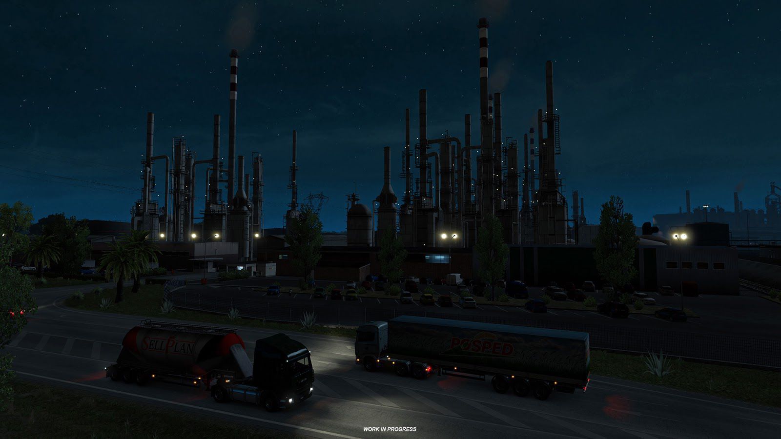 Proseguono i lavori per l’espansione italiana di Euro Truck Simulator 2, che contempla già nella sua versione originaria delle città nostrane, ma non con il dettaglio e la complessità che sono evidenziate qui. L’accento è ovviamente ai grandi poli industriali, partner indissolubili dei trasporti su gomma, e nello specifico le immagini si riferiscono a Carrara e Taranto.