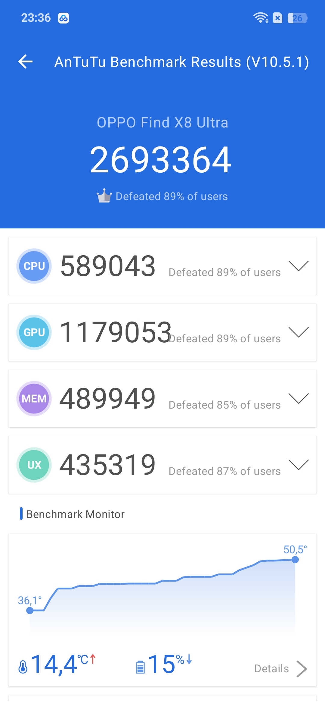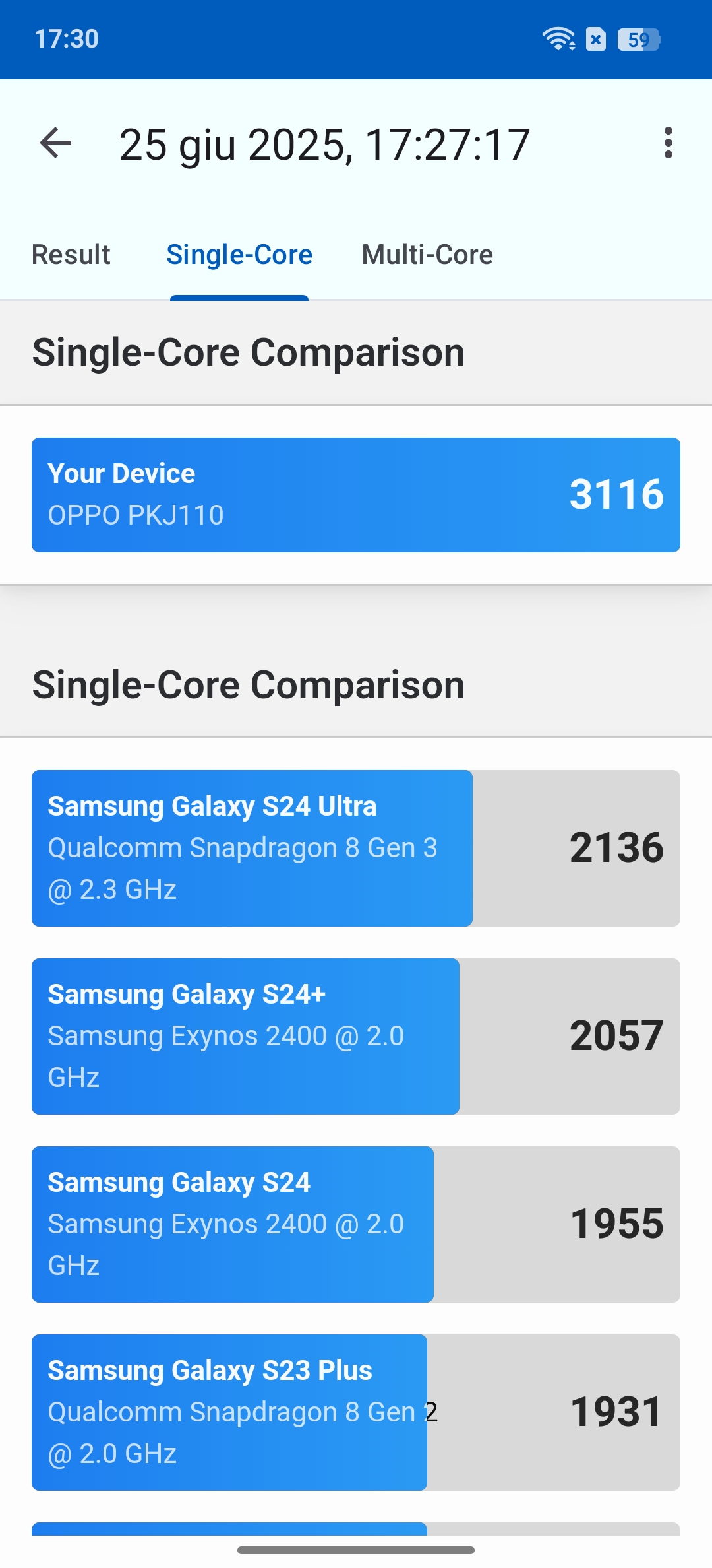 Il Qualcomm Snapdragon 8 Elite è un SoC estremamente performante, in grado di gestire senza problemi qualsiasi attività, dal gaming più intenso all’uso professionale. Un difetto da segnalare è il surriscaldamento sotto stress estremo: il telefono diventa molto caldo, al punto da risultare scomodo da tenere in mano. Questo, però, è avvenuto solo durante uno stress test, quindi difficilmente si presenterà nell’uso quotidiano. Tuttavia, è giusto menzionarlo.