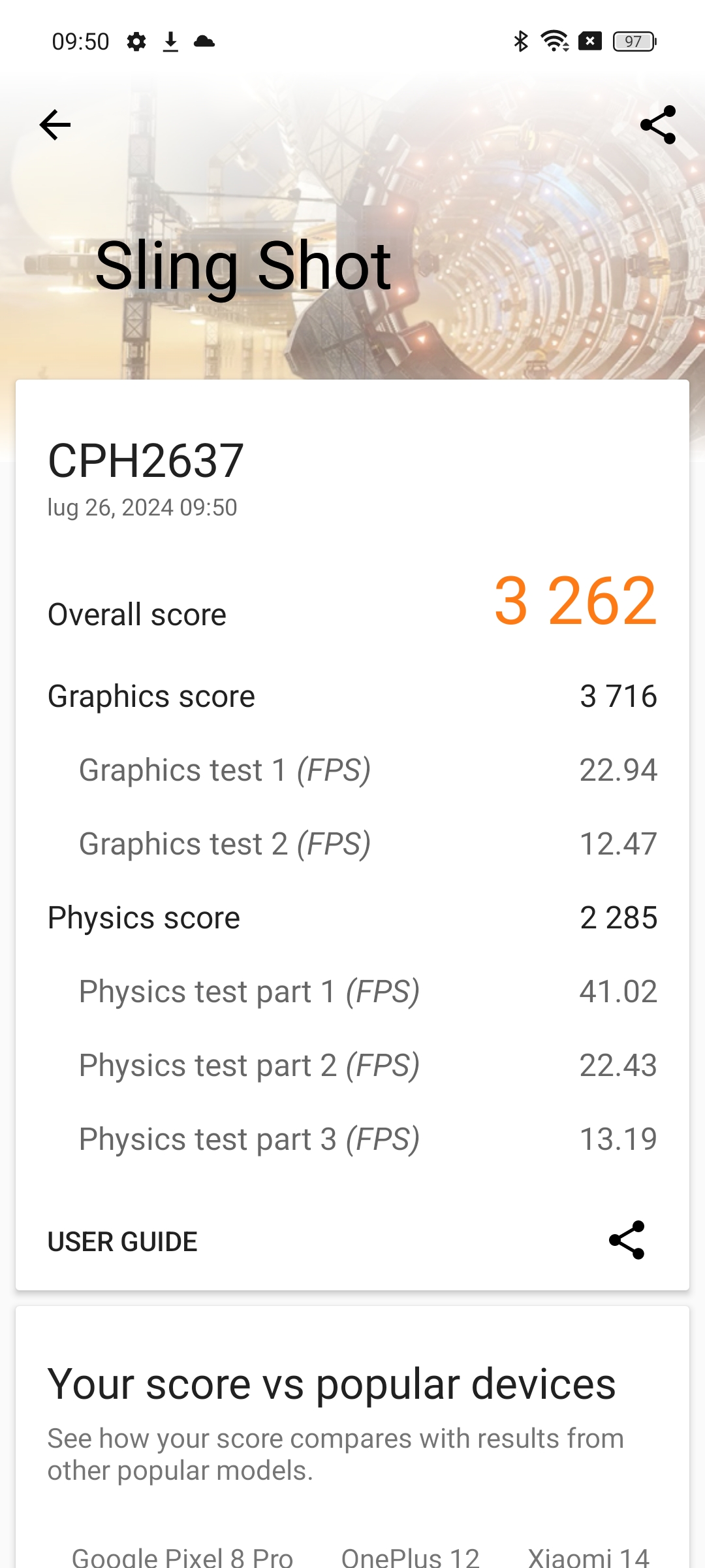 Lato gaming, l’OPPO Reno 12F è dotato di una GPU Mali-G57 MC2 con frequenza di 1072 MHz. Questa GPU consente di giocare a tutti i titoli più recenti. Ad esempio, è possibile giocare a Call of Duty: Mobile con impostazioni medie a 60 fps, mantenendo una buona stabilità. Anche Diablo: Immortal gira senza problemi. Durante le sessioni di gioco, non ho riscontrato un eccessivo surriscaldamento né un consumo eccessivo della batteria; il consumo si aggira intorno al 5% all’ora con impostazioni di gioco elevate.