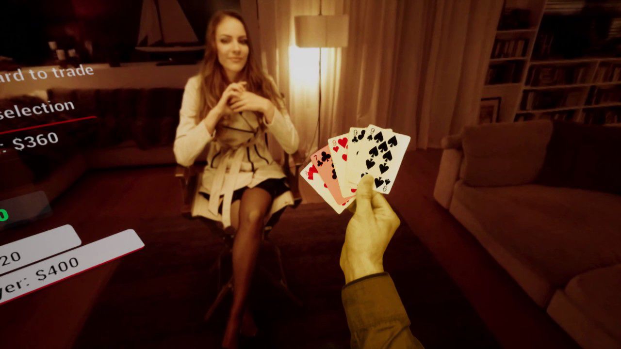 Il cuore del discorso è che sia l’idea di vincere al poker una fugace sbirciata a dare senso a questo tipo di intrattenimento, non ciò che si vede nello specifico. Siamo una generazione che ha tre dispositivi in grado di navigare su internet nel raggio di cinque metri, in pochi istanti possiamo accedere a qualsiasi immagine o filmato, perché acquistare Poker Show VR? Per l’ammiccamento. Avete capito bene, le tre modelle che dall’accento direi provenire dall’est ammiccano durante il gioco. O meglio, la prima è piuttosto abile nello sfoderare sorrisi intriganti e compici, le altre assai meno e questo è in effetti un vero peccato. Per ammiccare intendo che durante la partita, a seconda della mano, delle carte, di vittoria o sconfitta e – ovviamente – del livello di svestizione raggiunto ogni ragazza assume espressioni differenti, cosa che stimola una certa empatia e che a parere di chi vi scrive rappresenta il meglio che il gioco ha da offrire.