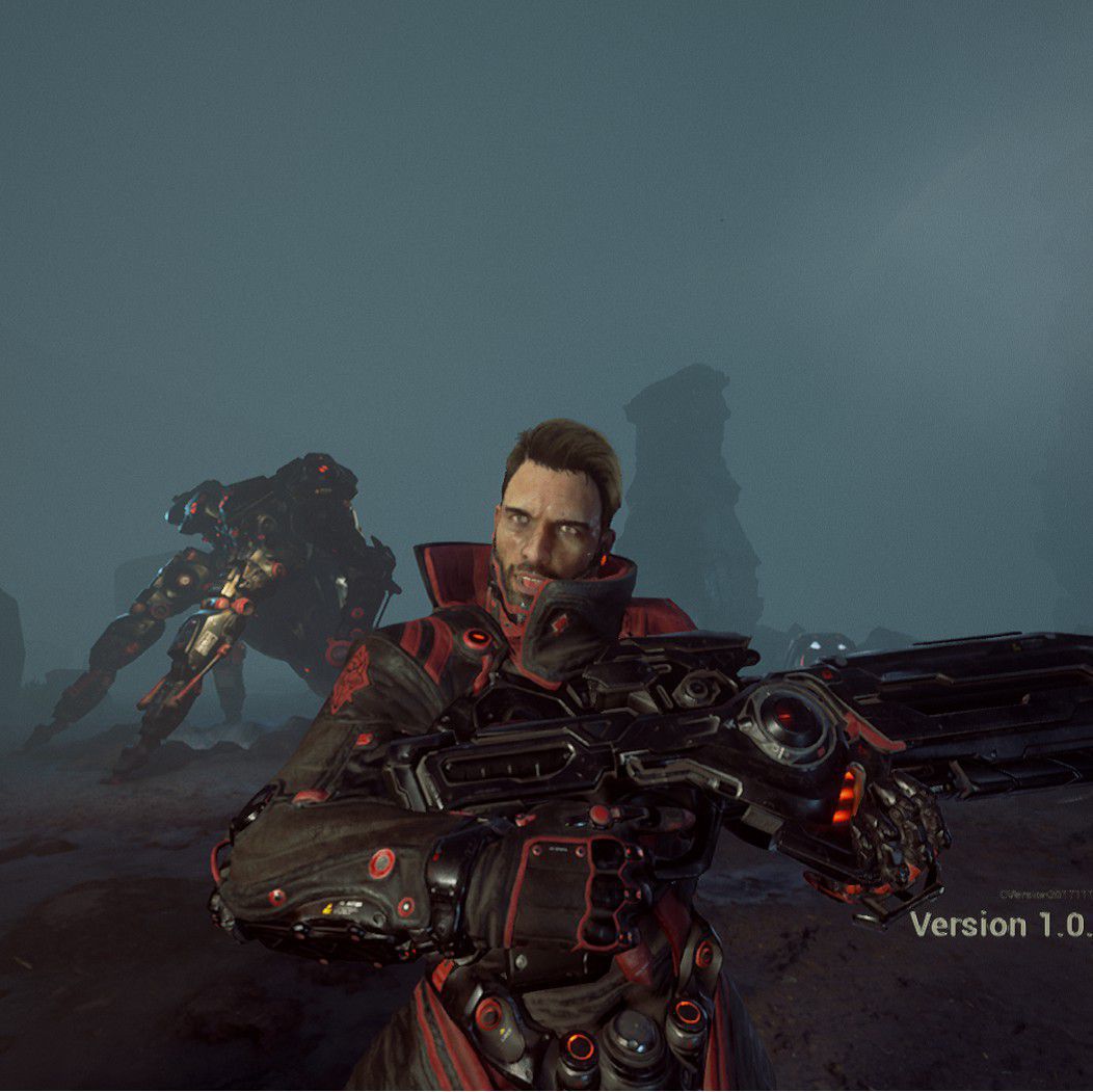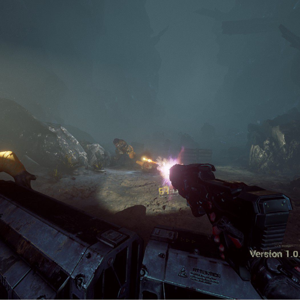 Dato che il gioco è stato più volte trattato nelle nostre pagine, vorrei evitare una lunga descrizione che ahimè temo di dover fare una volta ancora in un prossimo futuro. In breve, si tratta di un titolo fortemente ispirato a Gears of War: voi impersonerete un marine impiegato in una missione di assalto in un pianeta ostile. Anche qui la descrizione presente nella pagina Steam è contraddittoria, è taggato come GDR quando non ha assolutamente nulla di ruolistico, per dirne una al momento ha una singola arma e non c’è alcun tipo di crescita ne’ di libertà esplorativa visto che gli eventi sono tutti scriptati. Tuttavia, ed è un tuttavia bello grosso, è tra le migliori grafiche viste in realtà virtuale, anni luce avanti la tipica realizzazione indipendente a cui siamo tristemente rassegnati. Lo era anche nella scorsa “demo” ma c’erano enormi problemi di prestazioni, che sono qui stati integralmente risolti, con il dettaglio su low il sampling è basso ma gira fluidissimo anche con i requisiti base con una grafica di grande effetto.