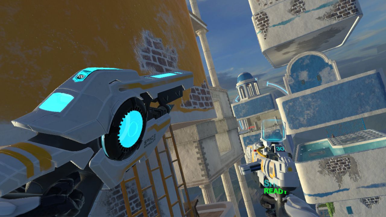 Nel campo di battaglia, è effettivamente molto divertente fronteggiare avversari umani e padroneggiare i diversi tipi di armamento. Il tipo di movimento, basato su una sorta di pistola a propulsione, calza bene l’attuale paradigma del muoversi in base a dove si punta con la mano ma anche il rampino per fare scatti fulminei risulta un toccasana per togliersi di torno da situazioni spinose. Vi sono anche dei bot che tuttavia sono poco intelligenti e per nulla stimolanti, e la sopravvivenza di questo di produzioni è legata anche alla capacità di tenere una stanza aperta con qualcuno dentro, e su questo versante non ci siano proprio, l’intrattenimento in solitario è prossimo allo zero.