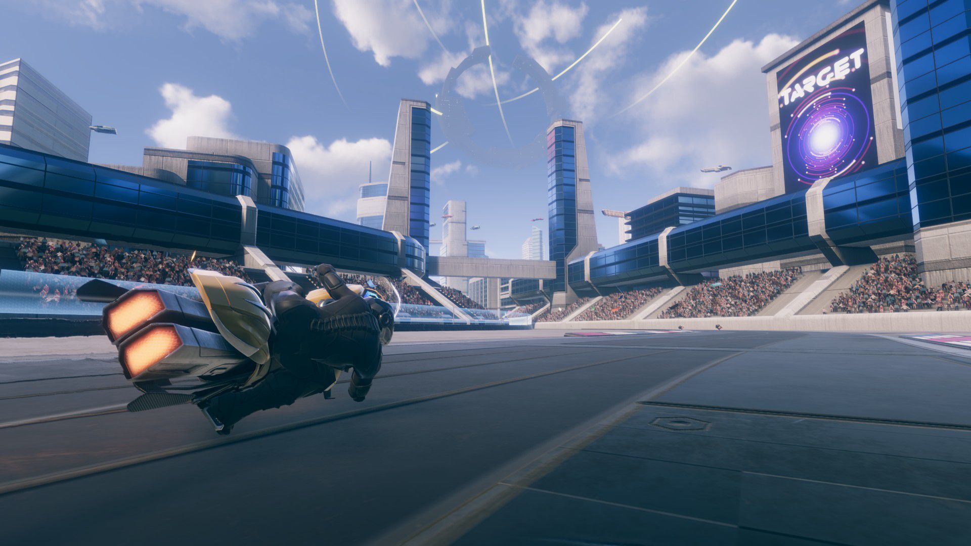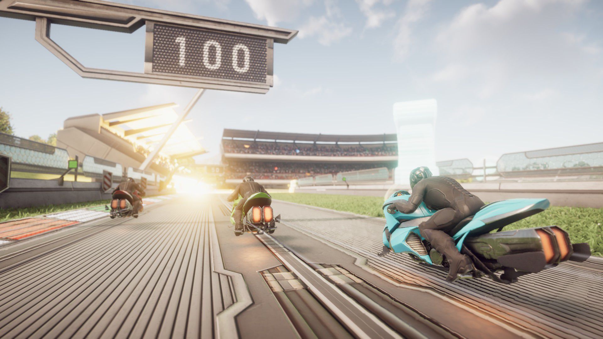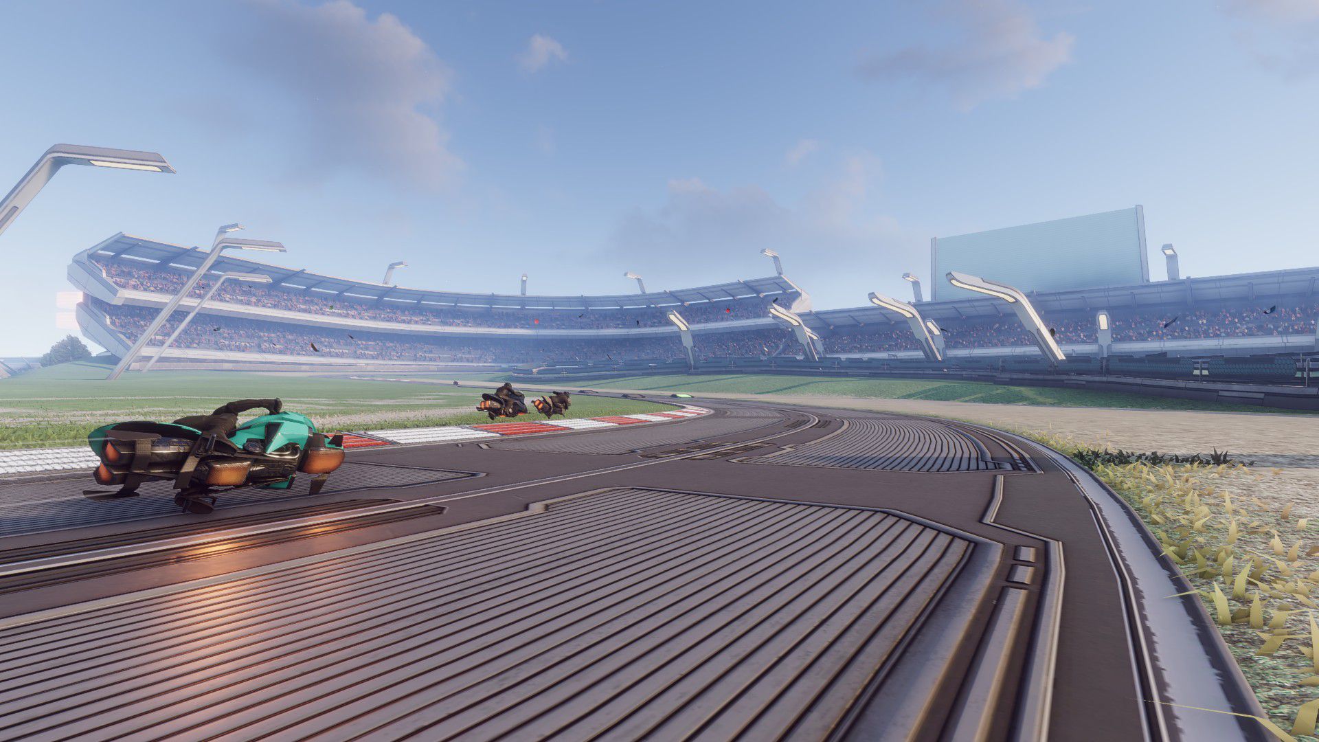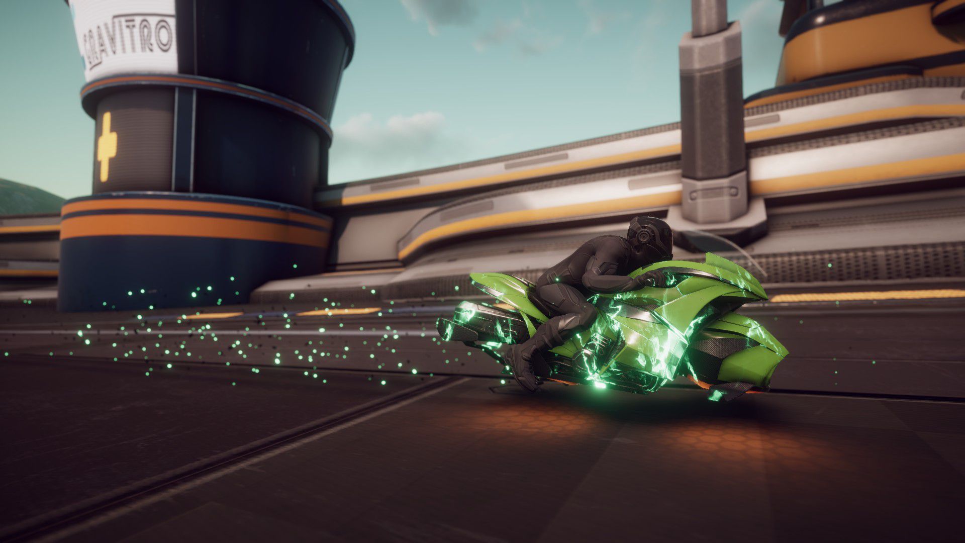 Lunghissimo preambolo per definire il vero punto di forza di V-Racer Hoverbike, il sistema di controllo implementato è il migliore visto finora e riproduce ragionevolmente bene l’esperienza di guida. Il titolo è in uscita in accesso anticipato, con una lunga strada di sviluppo da percorrere visto che le sbavature sono ancora parecchie, ma avendo pienamente centrato l’elemento chiave del gameplay. Trattasi di un titolo di corse futuribili che a tratti può ricordare Wipeout, le cui moto fluttuano a trenta centimetri dal suolo. Per vari elementi d’altro canto si è cercato di stare più vicini ad un contesto realistico: innanzitutto le velocità in oggetto sono relativamente simili a quelle di vere motociclette stradali, ma anche le piste sebbene stilizzate presentano curve ed avvallamenti plausibili contro i vari giri della morte dei cloni di Wipeout e F-Zero.