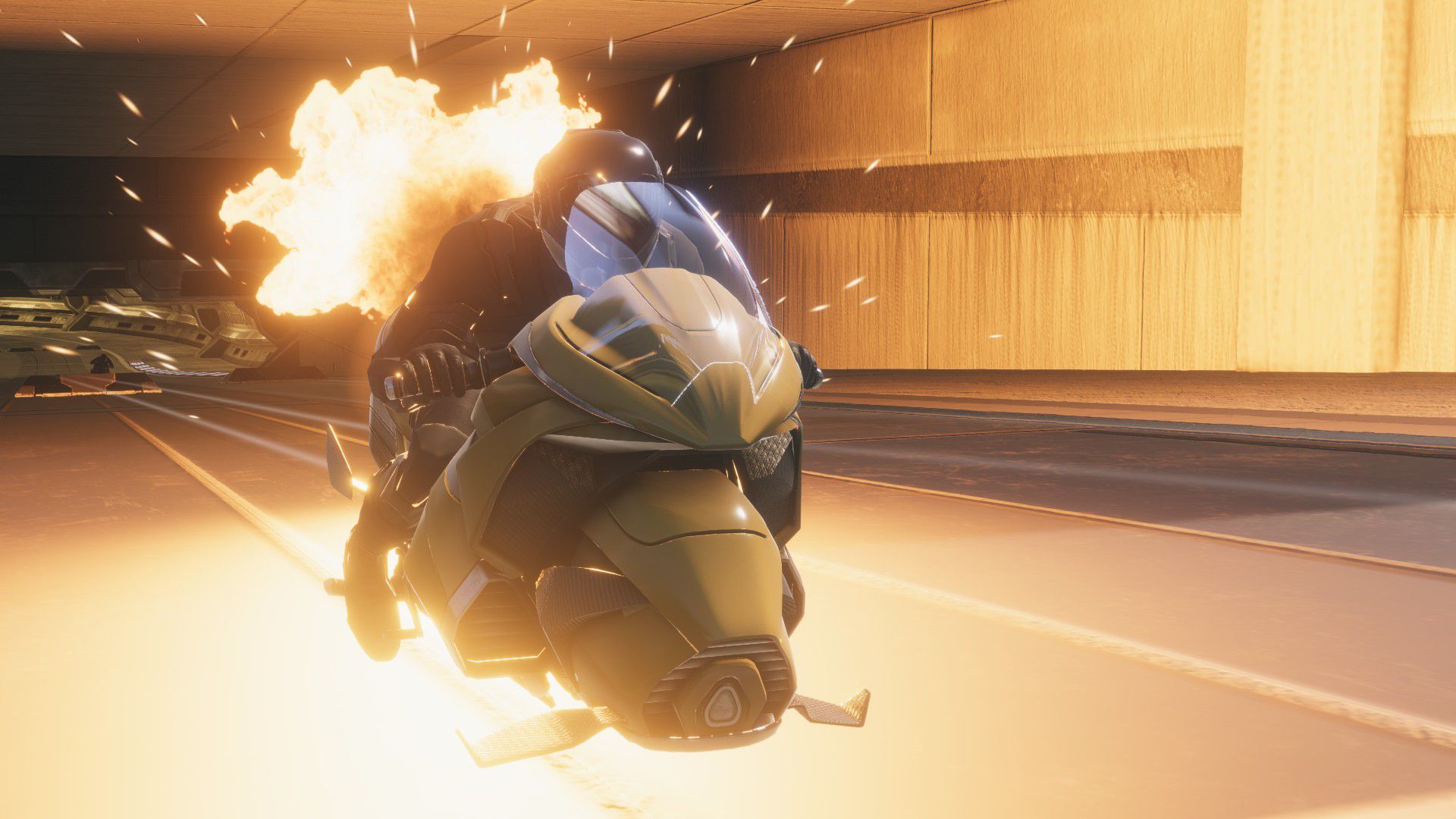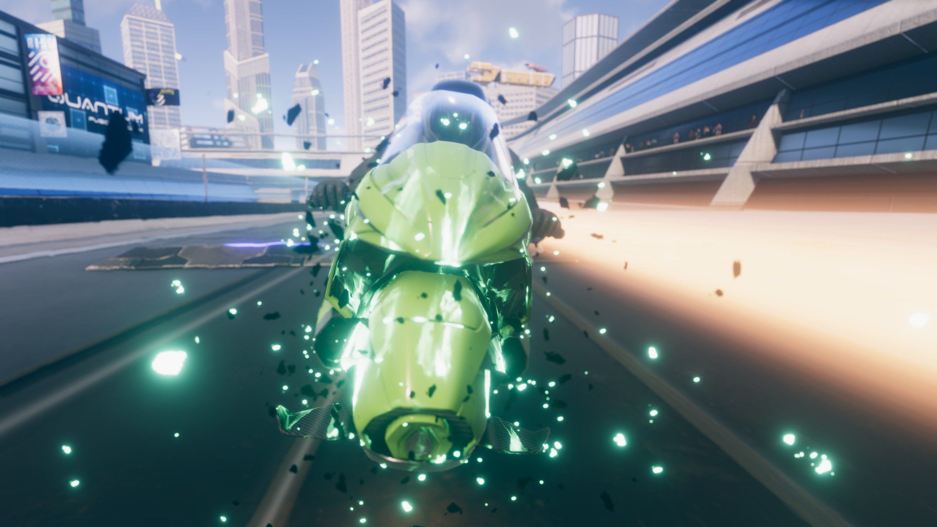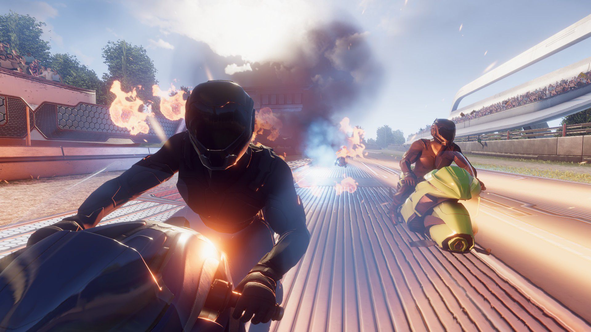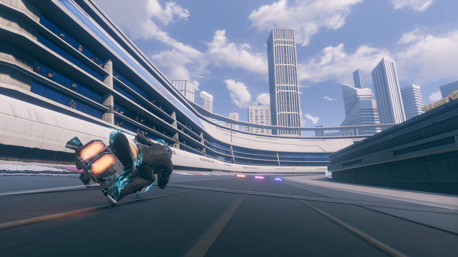 Lunghissimo preambolo per definire il vero punto di forza di V-Racer Hoverbike, il sistema di controllo implementato è il migliore visto finora e riproduce ragionevolmente bene l’esperienza di guida. Il titolo è in uscita in accesso anticipato, con una lunga strada di sviluppo da percorrere visto che le sbavature sono ancora parecchie, ma avendo pienamente centrato l’elemento chiave del gameplay. Trattasi di un titolo di corse futuribili che a tratti può ricordare Wipeout, le cui moto fluttuano a trenta centimetri dal suolo. Per vari elementi d’altro canto si è cercato di stare più vicini ad un contesto realistico: innanzitutto le velocità in oggetto sono relativamente simili a quelle di vere motociclette stradali, ma anche le piste sebbene stilizzate presentano curve ed avvallamenti plausibili contro i vari giri della morte dei cloni di Wipeout e F-Zero.