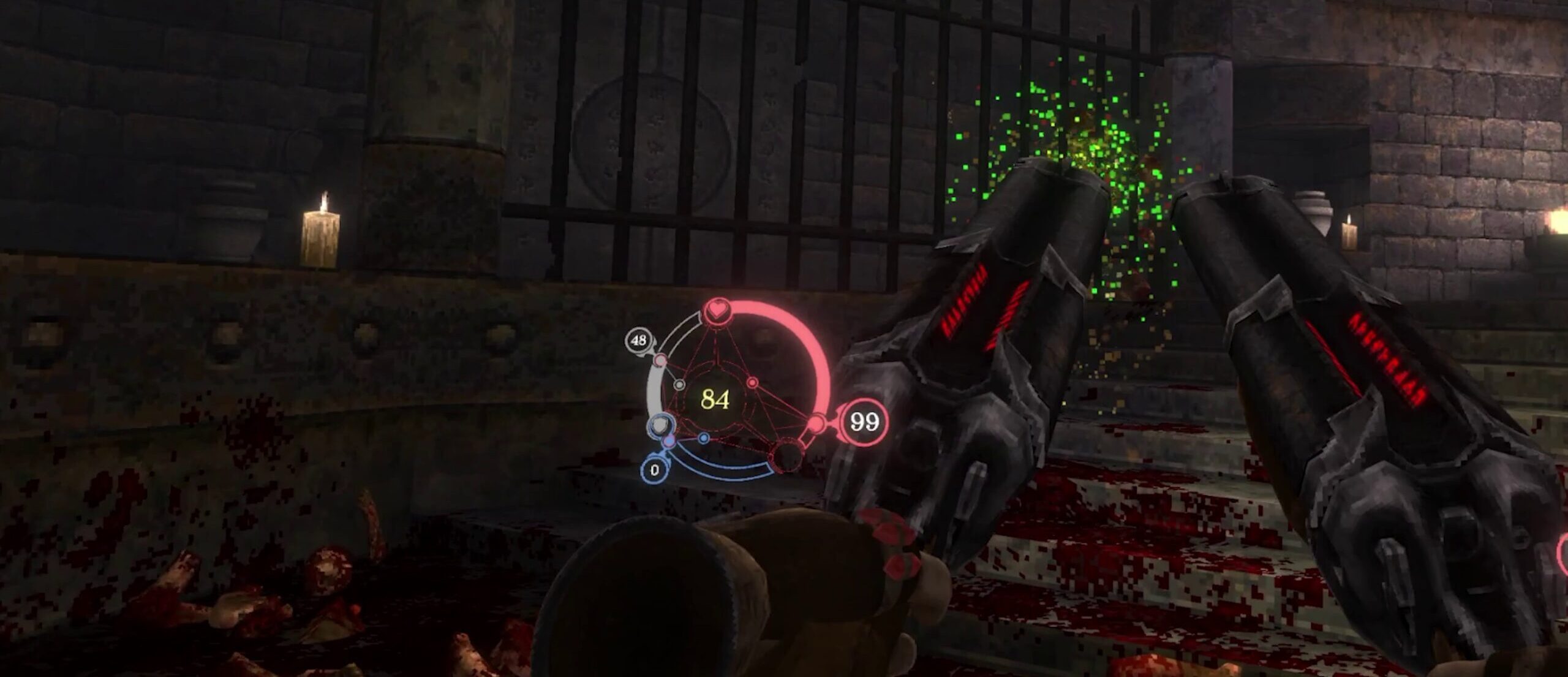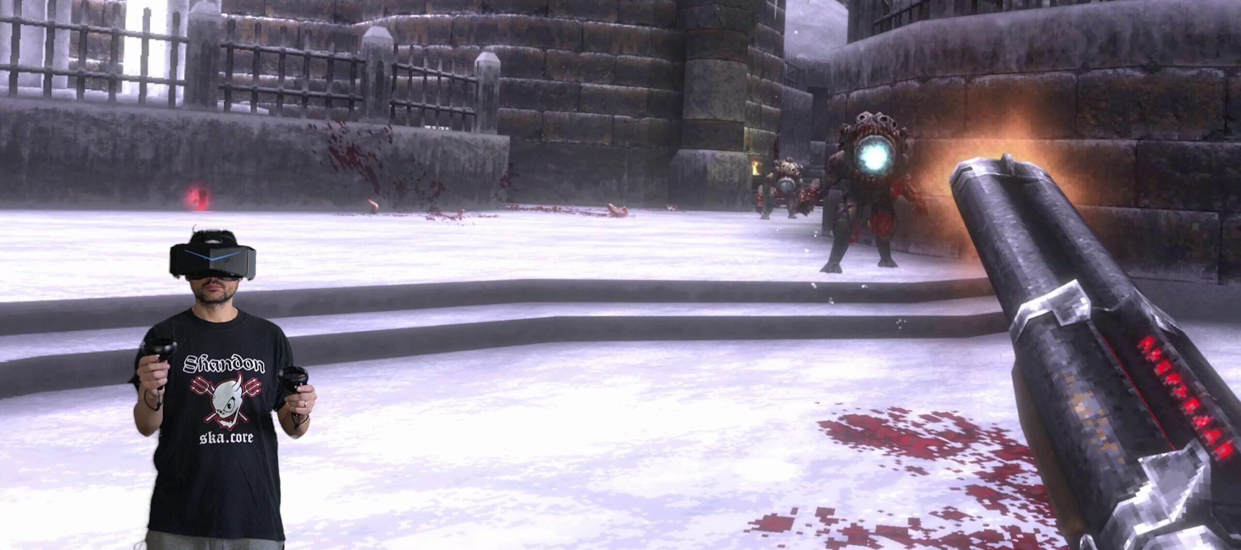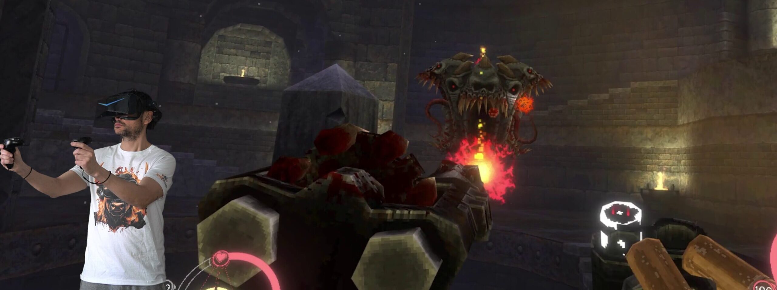 Ora in VR, le lame che brandivate inizialmente nella versione flat possono essere fatte vibrare in aria e smembrare i nemici con un gore ancora più marcato rispetto al gioco originale. E non solo: è presente il dual wielding, inedito, che rende il gioco ancora più unico nel suo genere. Il sistema di controllo completamente rivisto vi permette di passare dalle lame alle pistole, e la selezione delle spells e delle armi a rallenty aggiunge quel tocco di unicità che ricorda DOOM VFR, pilastro VR dei boomer shooter.